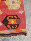 This vintage Turkish Kilim floor rug carpet is a beautiful handmade piece measuring 227x170 cm. The multicoloured design adds a traditional touch to any living space, making it a unique and authentic addition to your home decor. Made with care and attention to detail, this rug showcases the craftsmanship and cultural influence of Turkey, adding character and charm to your surroundings.