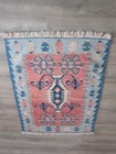 this is very beautiful ushaq hand made kilim wool on wool and naturel dyes , very tradational pattern aswell as ram's horn , atleast 50 years old size : 89 x 117 cm