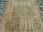 It measures 201x97cms. Distressed true vintage rug. Pictures are part of the description. All Pictures are taken outdoor under sunlight. Pictures appear more brighter under natural light. ALL THE INFORMATION IS GIVEN TO BEST OF OUR KNOWLEDGE HOWEVER HUMAN ERROR IS ALWAYS POSSIBLE.