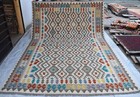 White Flatweave Afghan Tribal Khotrang Rug 7x10 ft Turkish Living Room Area Rug