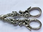 Exquisite vintage grape shears or scissors. Figural continental silver handles, lovely ornate embossed grapes, leaves, vines and 2 foxes. In very fine condition-no wear to the silver, dark areas are reflections. The vintage grape shears measure about 5.75 inches in length. Perfect for fine dining or give as a special gift!