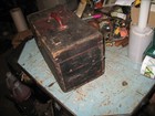 VTG WOOD TOOLBOX & TRAY 14 x 6 x 7 CHIPPY RED BLACK SILVER PHOTO MOVIE PROP ART