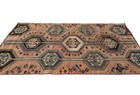 A kordish kazak from 1900's.it has little wear on the black field .just bought from local sales.no odor no stains just cleaned by professional rug cleaner. Apx 4'x8'