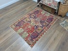 Vintage Hand Made Traditional Rug Oriental Wool Multicolor Carpet 126x81 cm