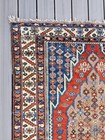 It is a durable and long-lasting piece, ideal for adding a touch of elegance and tradition to any living room, bedroom, or office space. Type: Handmade Kazak Rug. The patterns and colors are typical of Kazak rugs, known for their cultural significance and decorative appeal.