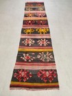 Old Turkish Narrow Kilim Runner. Rare narrow kilim runner, perfect for those houses with narrow hallways especially if you have your radiator pipes making it even narrower.