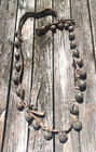 This is a Very Nice Set of Antique Sleigh Bells. The Bells Graduate and are Engraved and numbered. There is a total of 24 Bells. The Bells range in condition from fair to great condition. The leather strap is dry and cracked and in rough condition but this is expected due to the age.