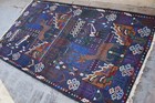 Vintage Afghan Baluchi Pictorial Area Rug 4x6 Blue Handmade Tribal Animal Carpet
