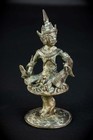 A rare and beautiful bronze Indonesian sculpture depicting a Bodhisattva on rising Lotus. Bodhisattva is a being on the path to enlightenment who delays their own final liberation (nirvana) to compassionately hepl all other setient beings achieve theirs. The statue dates back to the 1800s.