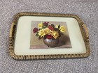 Vintage Woven Edge Glazed Serving Tray Roses In A Vase 30s 40s 50s