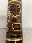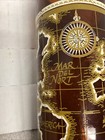Add a touch of elegance to your home decor with this beautiful brown candle holder. The holder features a detailed map of America, North America, and the Pacific Ocean, making it a perfect addition to any collection. The holder is made by New Holland, a trusted brand known for its quality products. The holder is perfect for collectors or anyone who appreciates beautiful and unique decor. Get this brown candle holder today and add a touch of sophistication to your home. Wick is not seen on candle. May be missing or just waxed over. Map says America Columbus 1492.