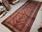 Vintage Hand Made Traditional Oriental Wool Blue Red Large Long Rug 224x134cm
