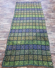 Vintage Handmade Traditional Floral Square Striped Floor Rug Carpet 247x108 cm