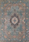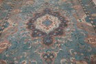 over-Dyed Blue Tebriz Floral Living Room Rug 8x11 Wool Handmade Semi-Antique Rug