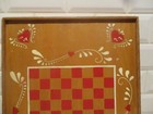 This is such a sweet checkerboard. Its painted in red and white with accents of hearts. Its initialed in bottom right corner with "DJ".