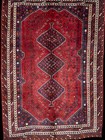 Handknotted Red Blue Black Diamond Star Persian 7X10 Shi-raz Caucasian 100% wool 100% wool mint condition,100% wool, All organic/ vegetable dyes, Circa 1960’s Shipped with USPS Priority Mail. 176 AVII