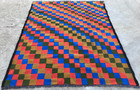 AREA OF PRODUCTION ANATOLIAN HAND MADE ADANA CICIM KILIM. The rug features a multicolored pattern with a regional design that reflects Turkish culture. The item is in its original form and was made in the 1970s using the woven production technique.