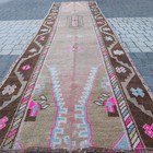 Handmade old rug 2.56 x 9.38 ft 78 cm x 286 cm. NOTE: There may be a slight difference in color tones in the photos due to light and rug wool aspects.