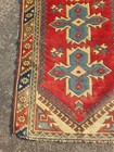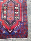 Handmade old rug 4.66 x 5.58 ft 142 cm x 170 cm. NOTE: There may be a slight difference in color tones in the photos due to light and rug wool aspects.