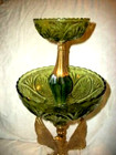 EARLY AMERICAN EAGLE GREEN GLASS COMPOTE 2 TIER MARBLE BRASS AMERICANA STYLE