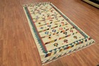 Vintage Handmade Traditional Geometric White Kilim Floor Rug Carpet 230x150cms. It has an excellent condition with nice colors. All Pictures are taken outdoor under sunlight. Pictures appear more brighter under natural light. ALL THE INFORMATION IS GIVEN TO BEST OF OUR KNOWLEDGE HOWEVER HUMAN ERROR IS ALWAYS POSSIBLE.