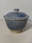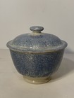 c1840 Antique Spatter Ware Blue American Sugar Bowl & Cover Early-Mid 19th Cent