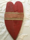 Large Painted Red Heart Folk Art Wall Hanging Plaid Ribbon Burlap