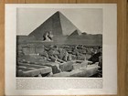 Antique photographic print. On the reverse the pyramids and sphinx, Egypt. Single page taken from an antique book.