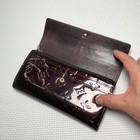 This slim, minimalist card case is designed to easily fit into small purses, crossbody bags, or even a pocket. This wallet has been regularly used for a couple of years and shows visible signs of wear, but it still functions perfectly and has plenty of life left.