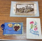 3 Vintage Early 1900s Used Greetings Cards Embroidered, Birthday, Christmas 1931