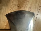 Tuatahi competition racing axe manufactured in the mid 1990s, used 3 times only in competition. Fitted with handle, 29 inches overall length, 5 lbs 15 oz. total weight. Double ground, finished, with wings cut out. Spring pinned for safety. Marks on the back of head are from removing stanchions after heats. Also included is a leather scabbard/cover with minor damage.
