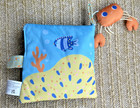 DEEP SEA DIVE BATH BOOK. Foldable Water Friendly Fabric. Five soft sea creatures dangle from a thin ribbon. The four creatures inside the book can be placed inside the two pockets.