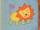 TIDDLIWINKS VALANCE 14" X 68". 3" POLE TOP OPENING AND 1 1/2" HEADER, BALLOON STYLE. PLUSH APPLIQUE ANIMALS BEAR, GIRAFFE & LION. Valance is pre-owned.