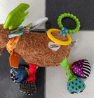 Nuby teething lion lovey security blanket, brightly colored with teething rubber on all 4 corners, ribbons and a plush lion in the middle. Crinkles when you hold it. In perfect condition. I don't believe it was ever used. 8" by 8" See photos for condition and dimensions