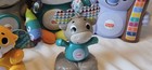 Fisher Price Learning teddy bear. Content: Teaches over 100 first words, colors, letters, numbers, and body parts through 75+ songs, sounds, and phrases. Touch hand paw and ear.