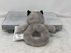 Soft sherpa material with adorable facial features. Attached wooden teether. This item is in VERY GOOD CLEAN CONDITION. A few dark scuffs on the wooden teether, but it's still in great shape for teething.