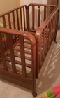 BABY / GIRL COT 140X70 CM, WOODEN: WALNUT, COLOR: MAHOGANY BROWN USED