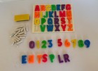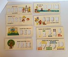 Includes everything seen in the photos. 16 cards, All Letters but missing U, 0-9 numbers missing 4 and a few extra letters. Small eraser and chalk.