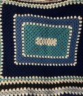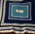 Handmade White Baby Blue Teal Navy baby crochet Afghan Blanket Throw 38”x38”