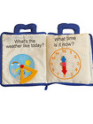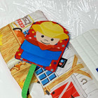 The Jolly baby children's my quiet book is a fabric toy designed for babies to engage with through touch and playful activities. The book is washable, making it easy to keep clean and safe for young children. The exterior color of the book is blue, offering a visually appealing and stimulating environment for little ones to explore. This developmental baby toy encourages interaction and sensory development while providing a fun and engaging way for babies to engage with their surroundings. Polka dot bag