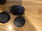The item is a pre-owned Vivitar 2x-1 Automatic Tele Converter in good condition. It has both lens covers and includes a leather case. Key details include: It's a 2x teleconverter, which doubles the focal length of a compatible lens. Typically used with Vivitar cameras and lenses, but may be adaptable to others with the correct mount. It has a metal body. Increases focal length, helpful for distance shots. Reduces light, requiring adjustments to exposure settings.