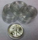 10 US Mint Capsules For ASE Coins LIGHTLY USED The US Mint does not sell capsules to replace those used in their modern commemorative and bullion coin programs. So, if a capsule is lost or broken it is difficult to find an exact match that will fit in the original government packaging. We have located a supply of these capsules that were the by-product of submitting coins for grading. These capsules are not new. They were used by the Mint in original packaging. They have not been abused or scratched although they may show minor signs of wear. Hence our calling them "lightly used." NOTE: COIN NOT INCLUDED. Size: Fits American Silver Eagle sized coins (40.6mm).