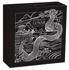 Reverse design: Coloured dragon with stylised waves and a flaming pearl, plus the Chinese character for dragon and “DRAGON 2024”. A premium Perth Mint Lunar Series III release struck from1oz of 99.99% pure silver inProof quality with a detailedcoloured dragon design.