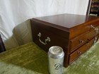 This as you can see is a MODERN wood chest with a hinge up lid and then a single drawer. It looks like 2 drawers but its not. You could re-fit the interior to suit your own needs. Again you could get rid of these and put what you want in it.