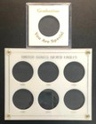 ALL CLEAR SLIDE OUT SLEEVES/COVERS INTACT (16 CLEAR SLEEVES TOTAL. COVERS FRONT AND BACK OF COIN).