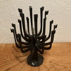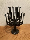 The Aglow Candelabra was designed by Gunnar Cyrén for Dansk Design in 1973. Comprised of a round base from where a thick log emerges to spreads out into 18 curved arms, each with a holder for included candles. It has a matte grayish finish and the two-tiered tree-like shape adds volume and height to the candelabra. Beautiful mid-century modern Scandinavian Candelabra. Cast iron. In very good condition. Some chipping of finish on the base but over in great shape. Perfect for your Eichler.