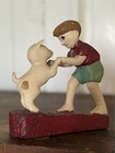 One of a Kind Vintage 1940's Painted Hand Carved Wood Folk Art. Young boy playing with his dog. I have several statues made by the same person and some of them are dated 1946. They are all the same style so I can only assume this was also made in the 1940's. This figurine is not signed or dated. 6.25" x 5.5" x 1.75" Nice condition! If you have questions please feel free to ask. Thank you!