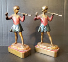 Antique Pompeian Bronze Sculptures ca. 1920-40s. Peter Pan playing the Flute?. the green felt is missing from one of the bases-see photos.
