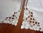 Vintage Lot of 6 Table & Chair Covers Embroidered Ecru Cotton