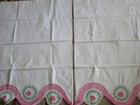 They are handmade from pillowcase tubing. These are also handmade from pillowcase tubing. The third set features pink and white crocheted flowers with green crocheted leaves. All three sets in excellent condition!